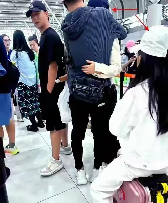 章子怡一身黑色高腰阔腿裤搭配黑色上衣,戴着棒球帽,穿着高跟鞋,她本人超级瘦,气质出众,打扮时髦洋气,看背影超级美。