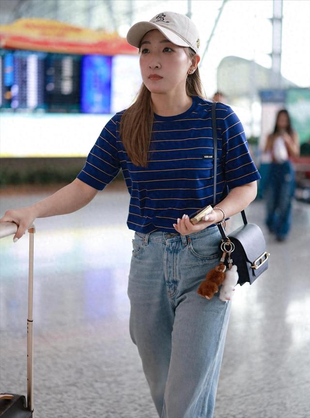 刘诗雯0925广州机场出发,穿深蓝色条纹衣,给人一种血气很足的美