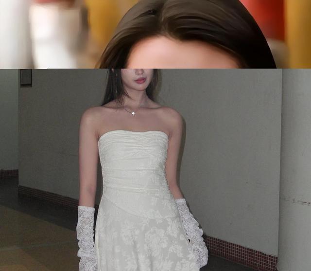 网友把当天的画面截成两组照片,一组是论坛现场的深色套裙,一组是夜间品牌晚宴的短裙配丝袜,两组拼在一起,对比强烈
