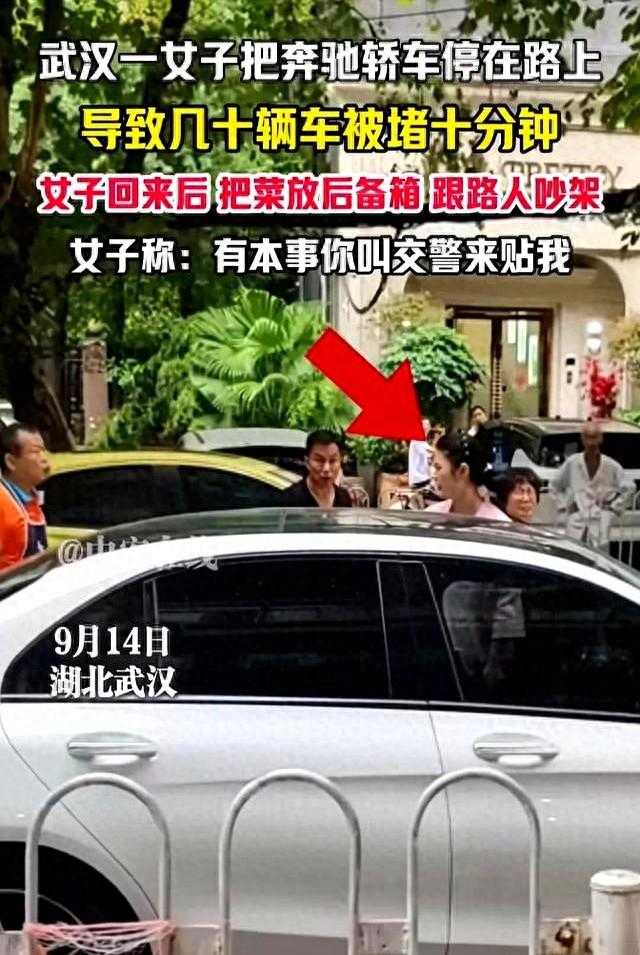 武汉奔驰姐高峰期横停买菜吵得汉正街抬头围观