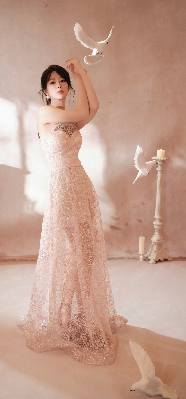 时尚圈她也越来越稳。以前大家说她可爱型,现在杂志一个接一个请。2024到2025撞过几次高定,娜扎那件Rahul Mishra她也穿了,气质完全不输。2026开年直接Valentino红裙加VOGUE封面,双杀。